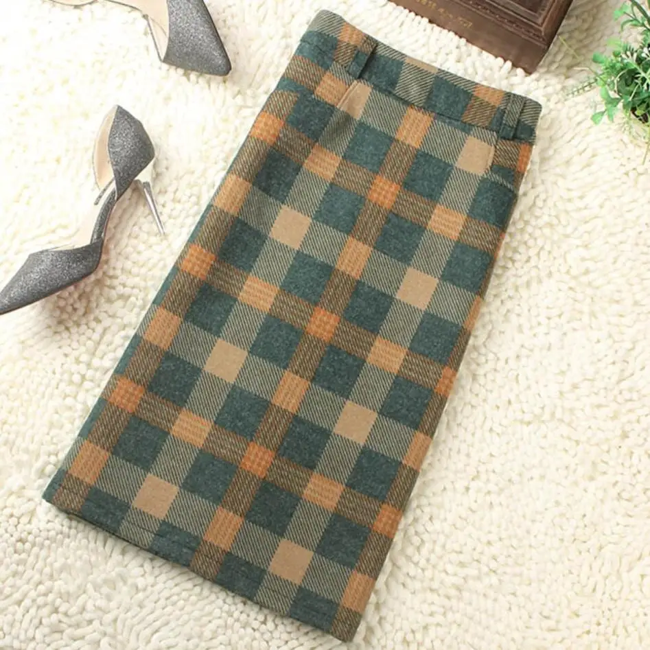 Осень-зима 2021, женская элегантная клетчатая юбка с высокой талией в стиле ретро, шерстяная юбка