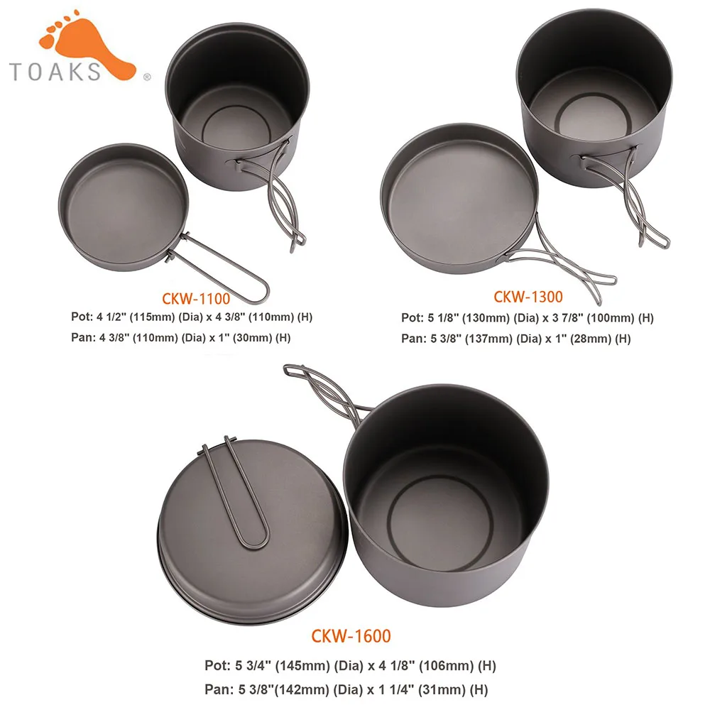 Набор посуды TOAKS, сверхлегкая титановая кастрюля, сковорода для кемпинга, титановая чашка для пикника, 1100 мл, 1300 мл, 1600 мл