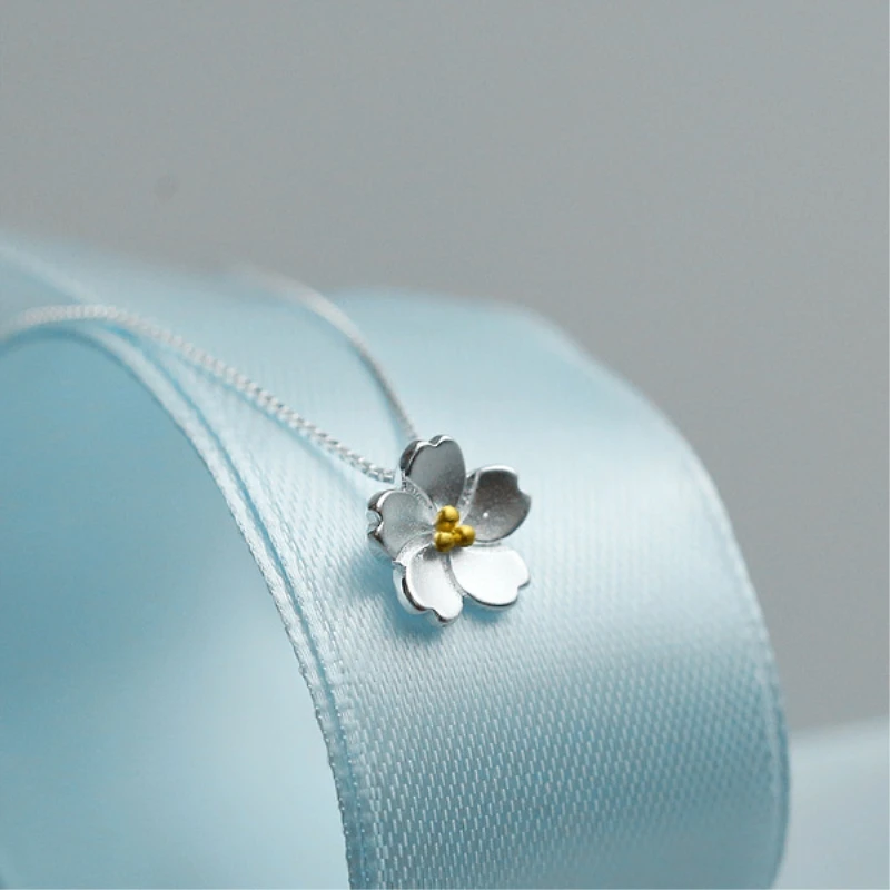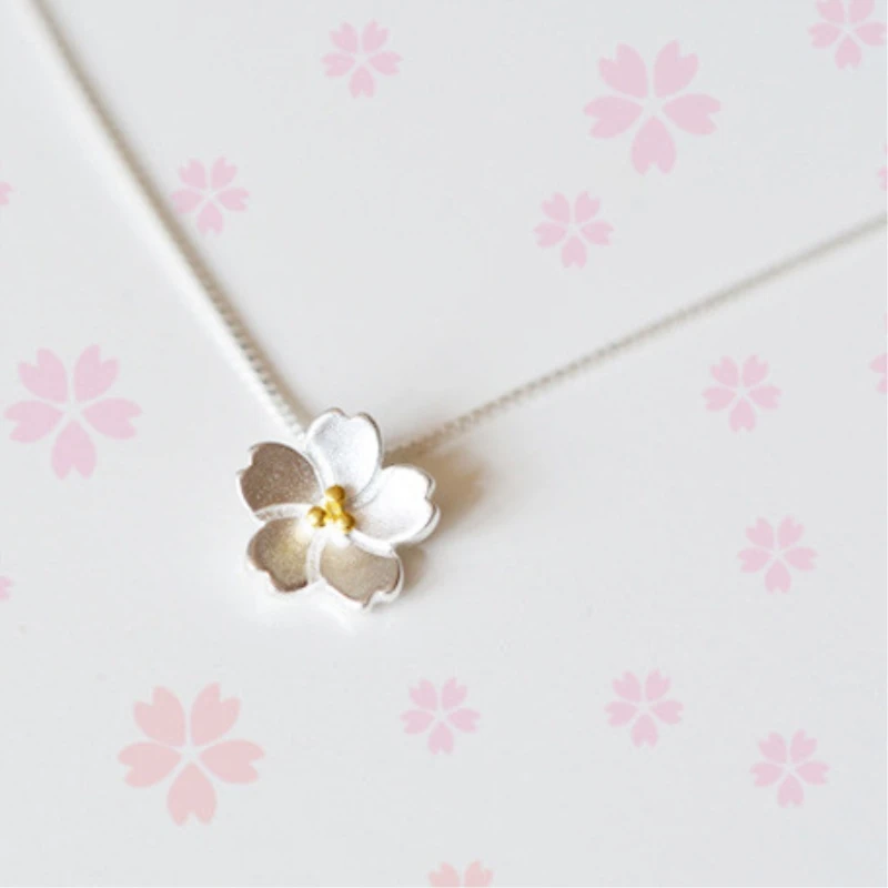 Оригинальное авторское колье ручной работы с цветком вишни на цепочке до ключиц подарок серебряный цвет темпераментное женское ожерелье SNE137