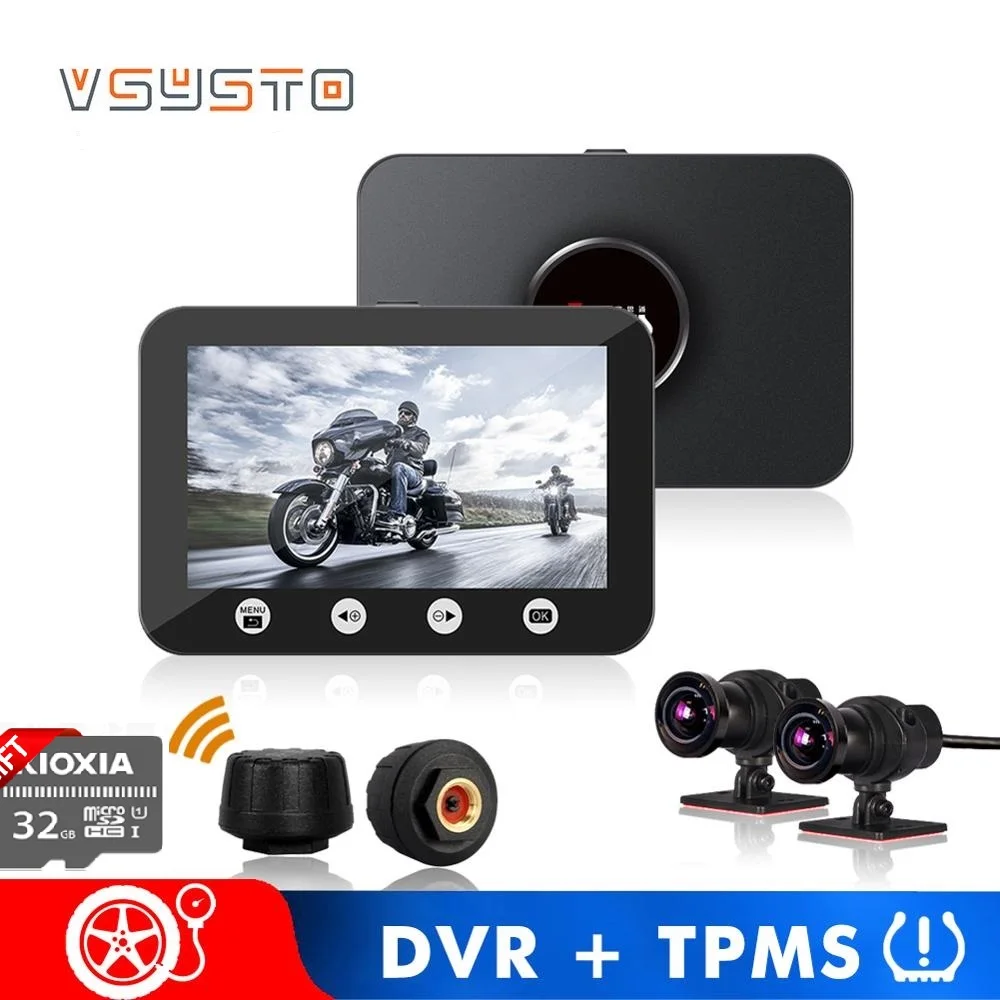 Видеорегистратор для мотоцикла VSYSTO, камера с мотором Fisheyes 170 градусов, двойной SONY IMX307 sensor1080P FHD STARVIS Wi-Fi, цифровой дисплей