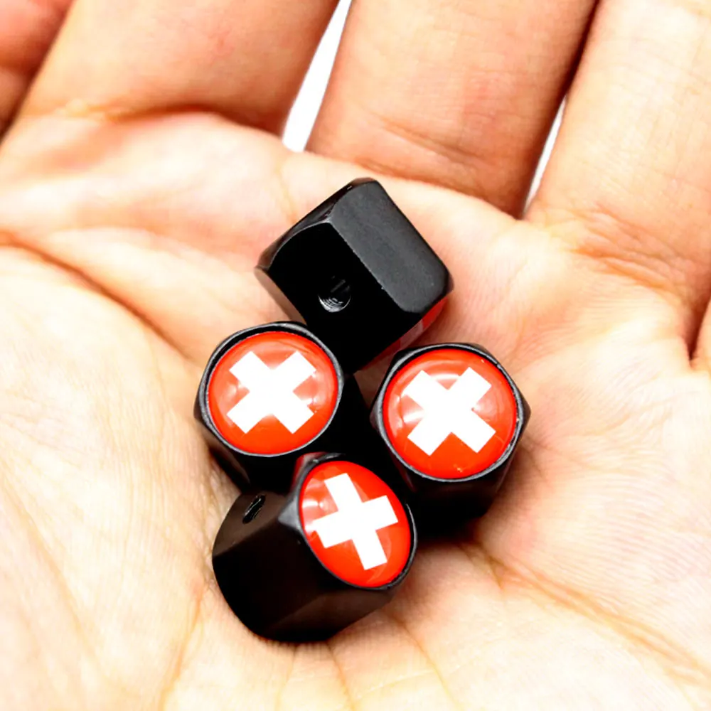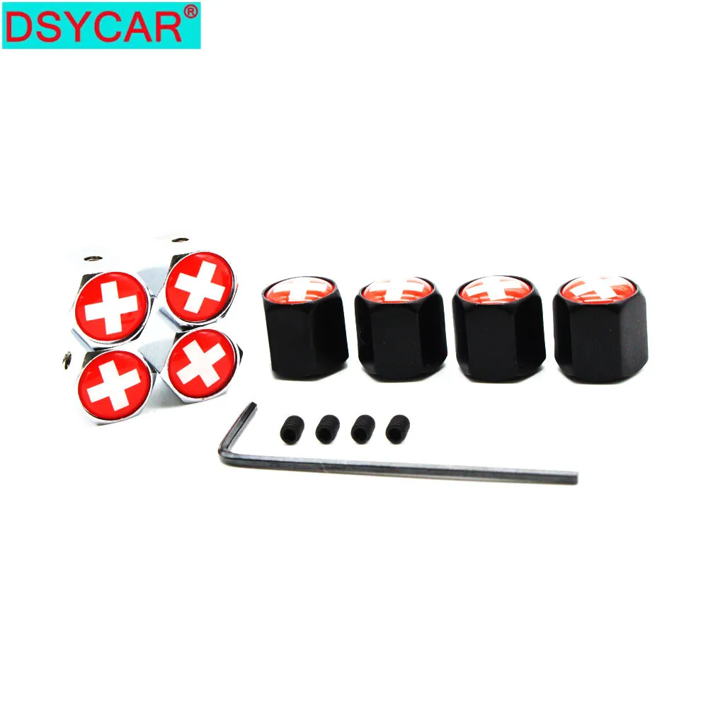 DSYCAR, 1 комплект, автомобильный Стайлинг, цинковый сплав, противоугонная, Швейцарский флаг, автомобильный клапан, колпачок, s, колеса, шины, стволовые, воздушные колпачки, воздухонепроницаемые крышки
