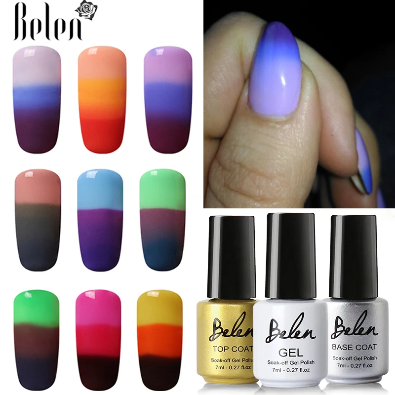 Гель-лак Belen 3 в 1, термоизменяющий цвет, УФ-Гибридный лак, Полупостоянный хамелеон, сменная температура, основа, 7 мл