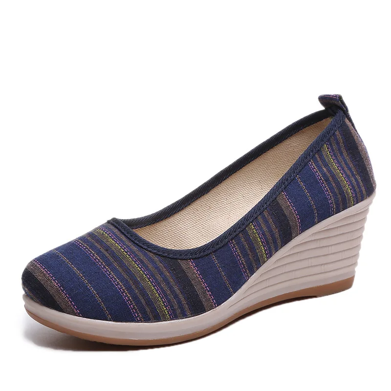 Veowalk, Разноцветные полосатые женские повседневные льняные хлопковые туфли на танкетке, богемные женские мягкие искусственные туфли на платформе для среднего возраста