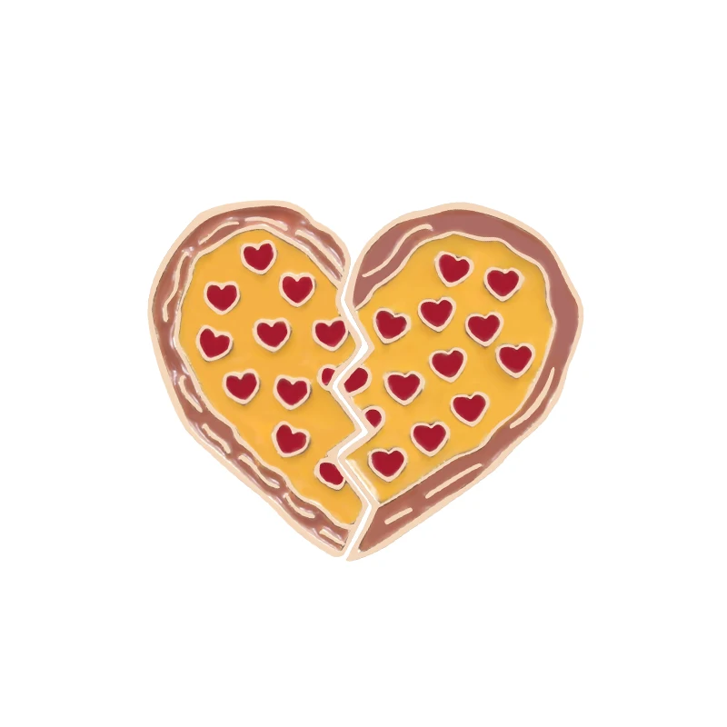 Эмалированная брошь в форме сердца, значок на булавке в форме разбитой пиццы, 2 шт.компл., аксессуары для одежды, рюкзака, значки, броши, Ювелирное Украшение для детей