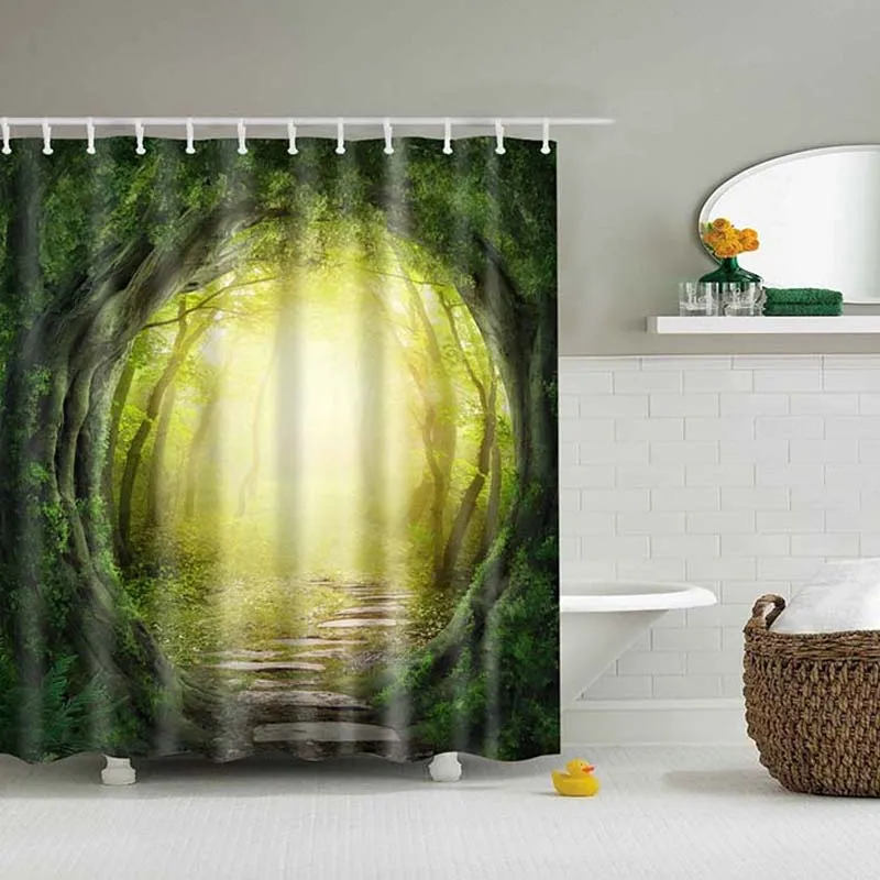 Занавеска для душа с изображением природного леса, для ванной комнаты