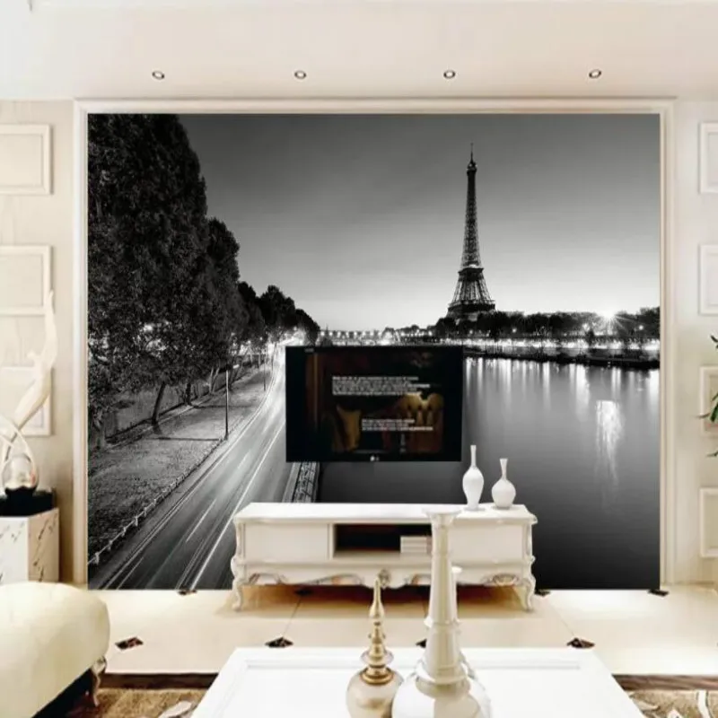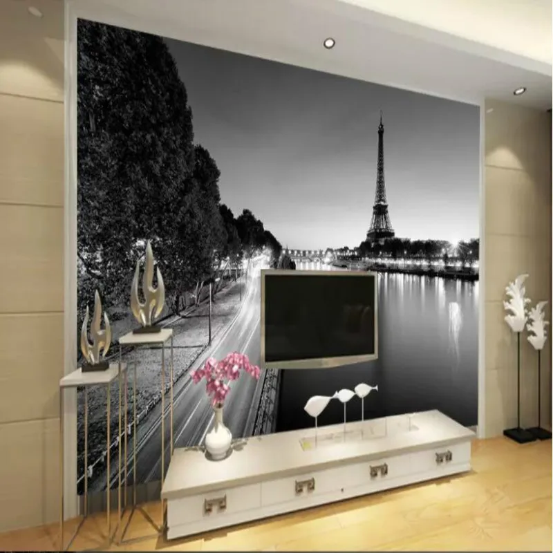 Парижская башня, простой черно-белый пейзаж, обои для стен, 3d обои, фон для телевизора, роспись, украшение