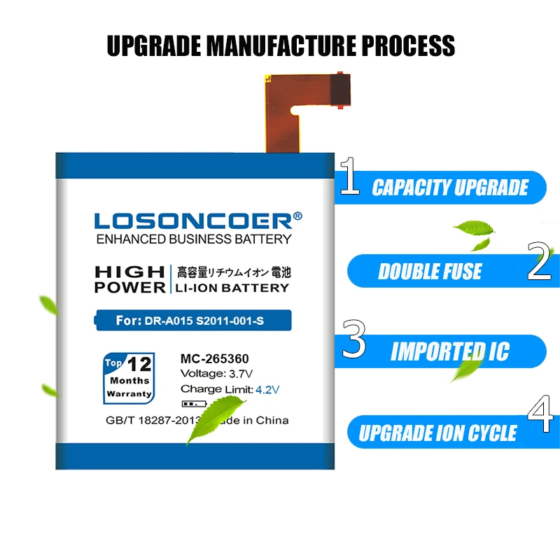 Профессиональное тестирование всехLOSONCOER Аккумулятор прошел строгий контроль качества перед отправкой: 100% новый и O цикл, без эффекта памяти, 72 часа испытания на старение, высокая температура статического и активировать внутренний химический элемент ячейки, обеспечивает стабильность зарядки и разрядки. Поэтому вам не нужно активировать, заряжать или использовать его немедленно.