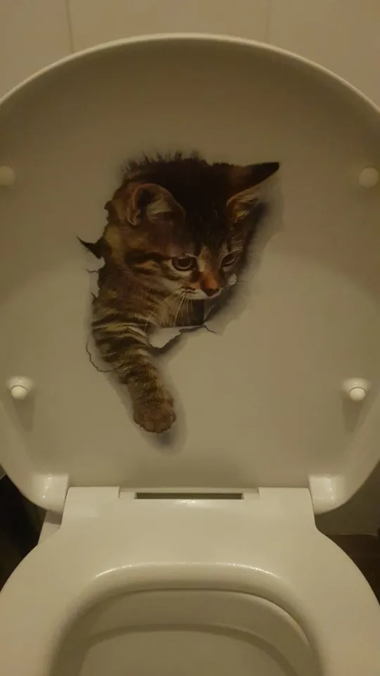 Симпатичный кот собака наклейки на унитаз, украшение для дома, забавные мультяшные животные, унитаз, настенная живопись, яркий 3d котенок, щенок, сафари, ПВХ наклейка на стену