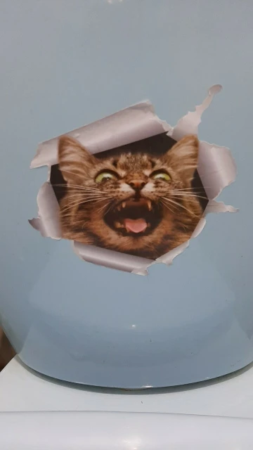 отлично прикрыл пятно на двери теперь кот такого же окраса думает, что у него есть брат близнец