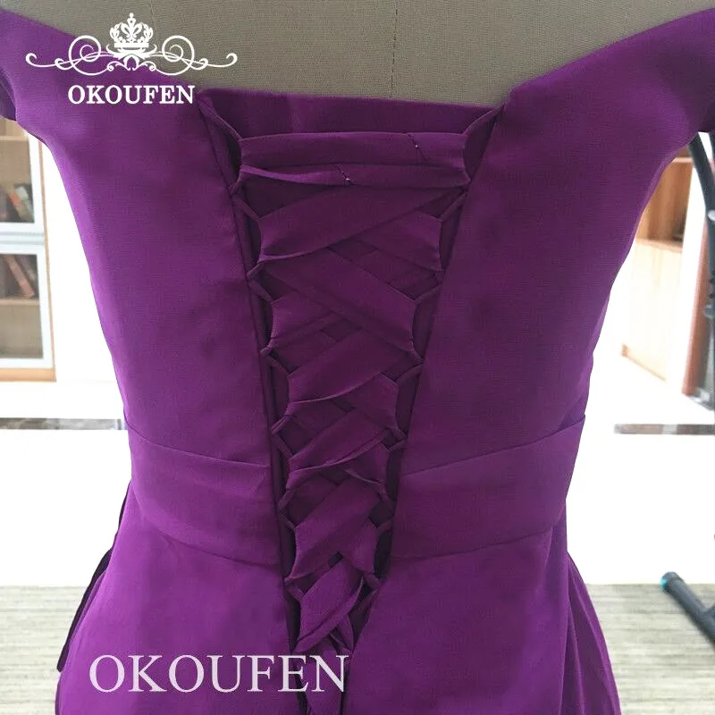 Блестящее фиолетовое платье подружки невесты с бусинами и оборками, длинное платье русалки с открытыми плечами, женское торжественное платье для свадебной вечеринки, платье подружки невесты, платье подружки невесты длиной до пола, на заказ, на шнуровке, сзади до 100