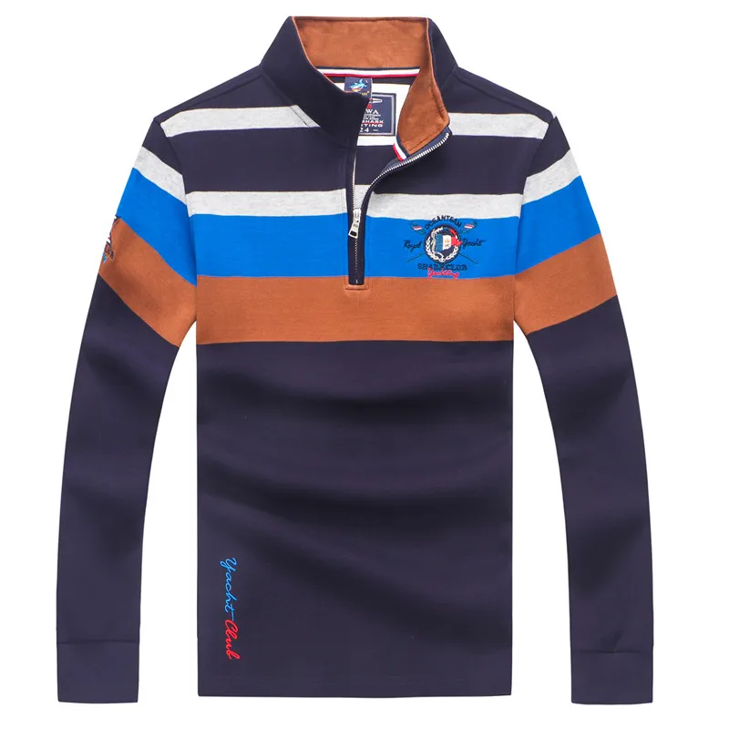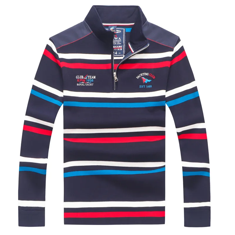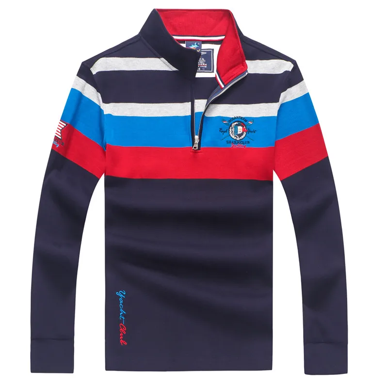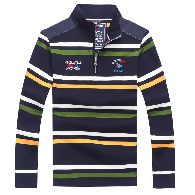 Мужской свитер в полоску, с воротником-стойкой, на молнии