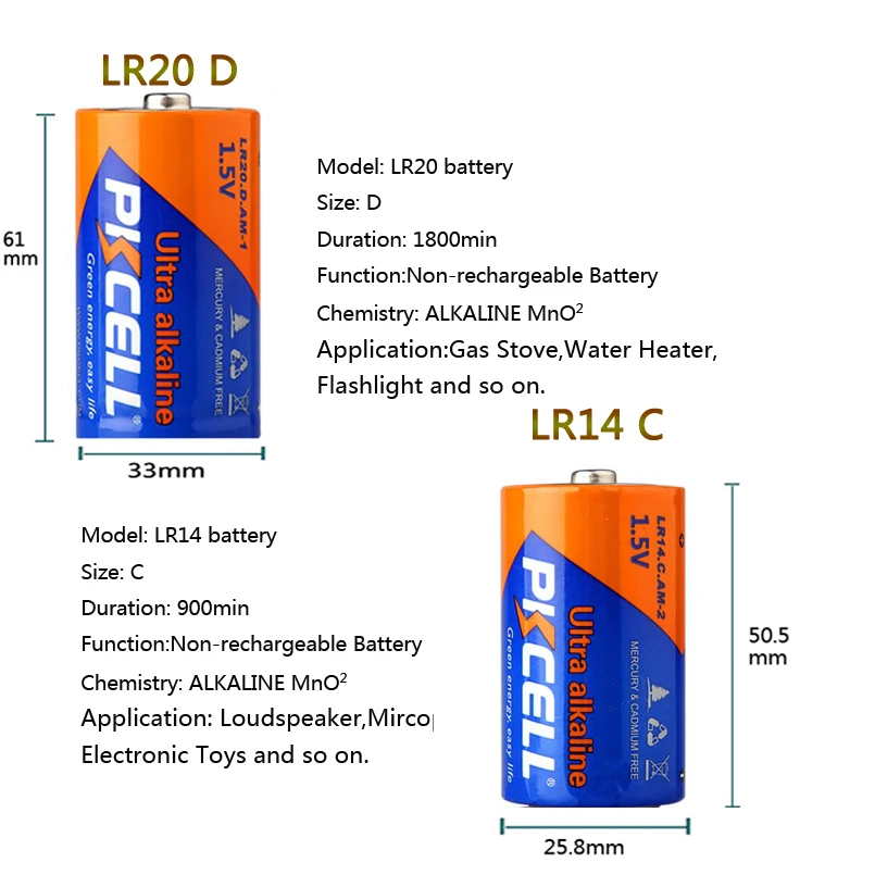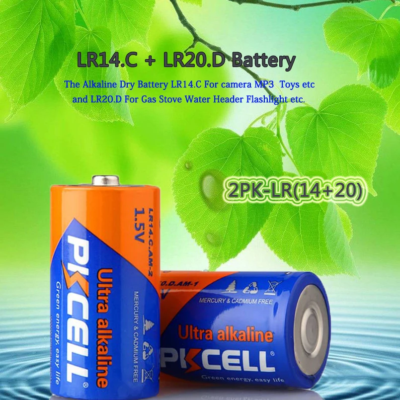 PKCELL 2PK-LR14 C + 2PK-LR20 D щелочная Батарея 1,5 V LR14 LR20 для громкоговоритель, микрофон, газовая плита, водонагреватель