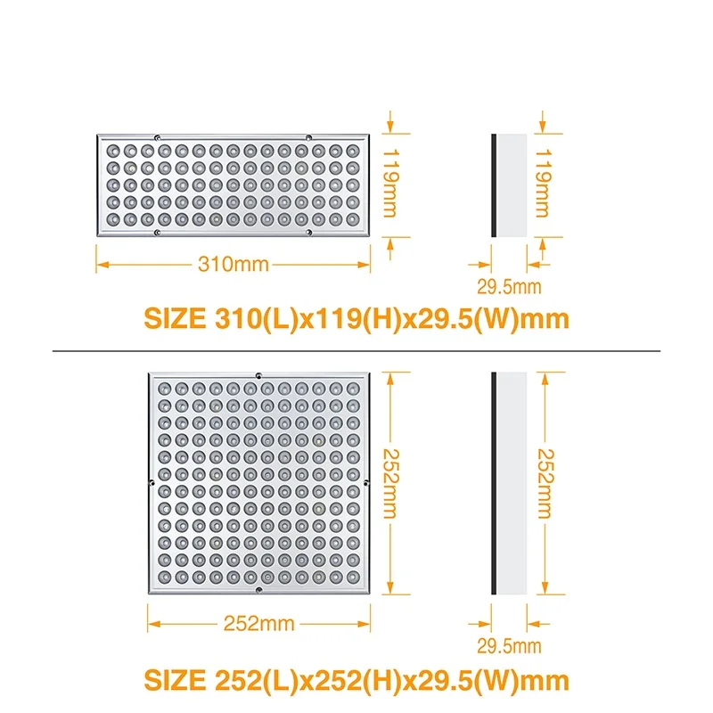 Модернизированный светильник для выращивания был разработан с полным спектром (90 красный + 36 синий + 6UV + 6IR + 6 белый)/(47красный + 19 синий + 3UV + 3IR + 3 белый), дает идеальную длину волны для всех растущих сцен. Подходит для посева, прорастания, вегетативного и цветения.