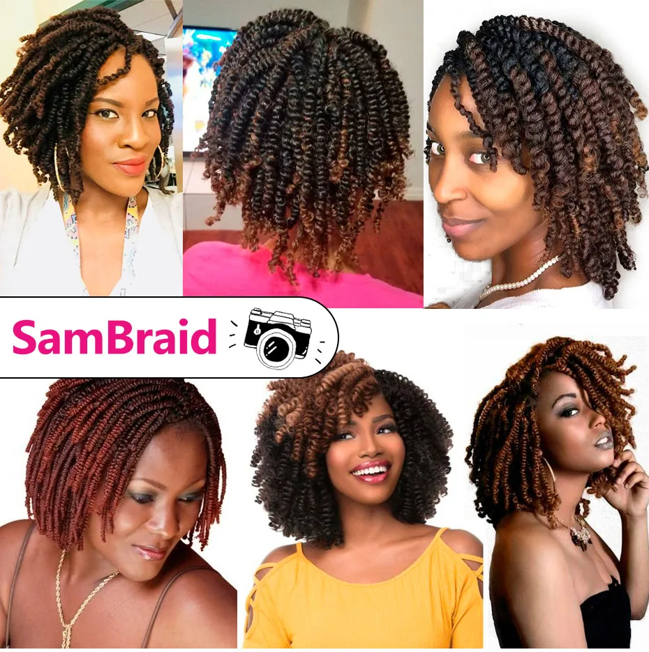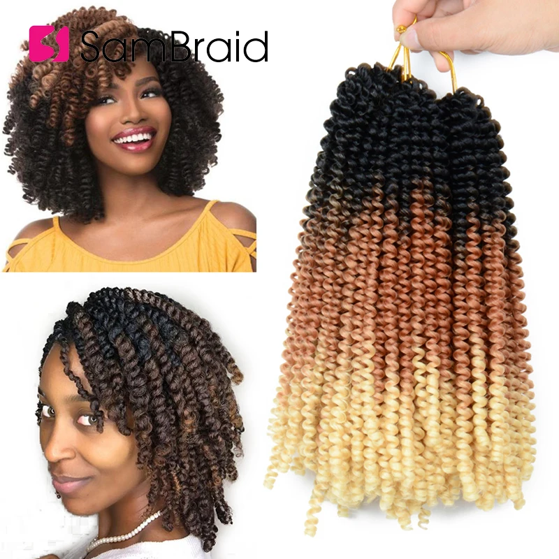 Самкоса 8 дюймов Весна Твист вязание крючком наращивание волос Вязание крючком косички страсть бомба Твист Синтетические плетеные волосы