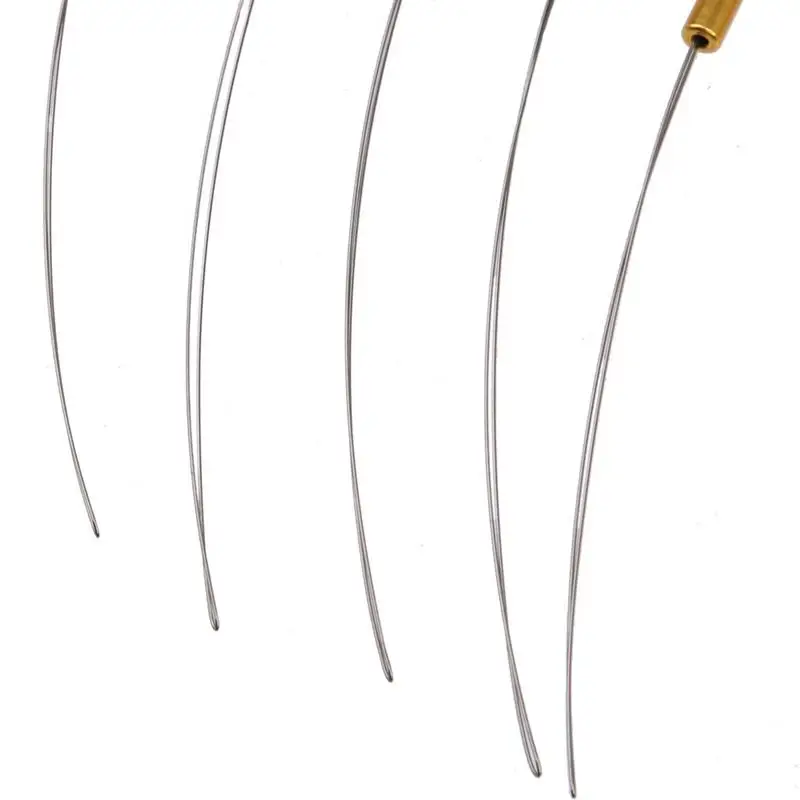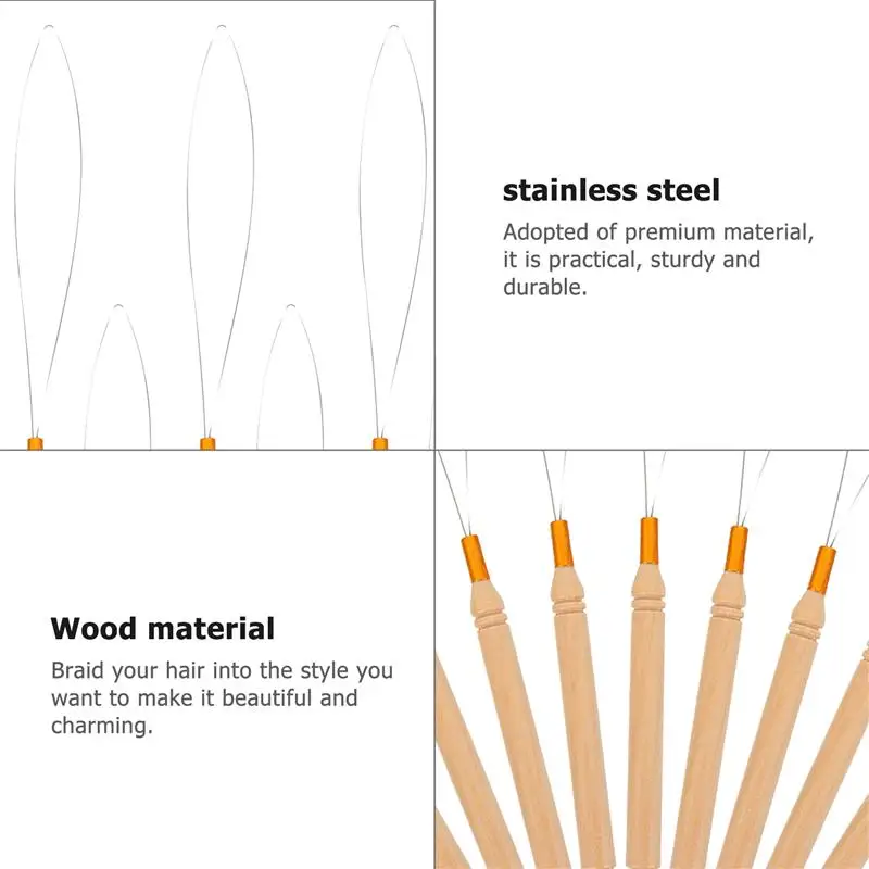 Этот товар представляет собой упаковку из 12 игл с деревянной петлей, предназначенных для наращивания волос. Он изготовлен с деревянной ручкой и металлической иглой. Это необходимый аксессуар для парикмахерской и полезный инструмент для поделок. Специальная деревянная ручка удобна в использовании и не скользит.