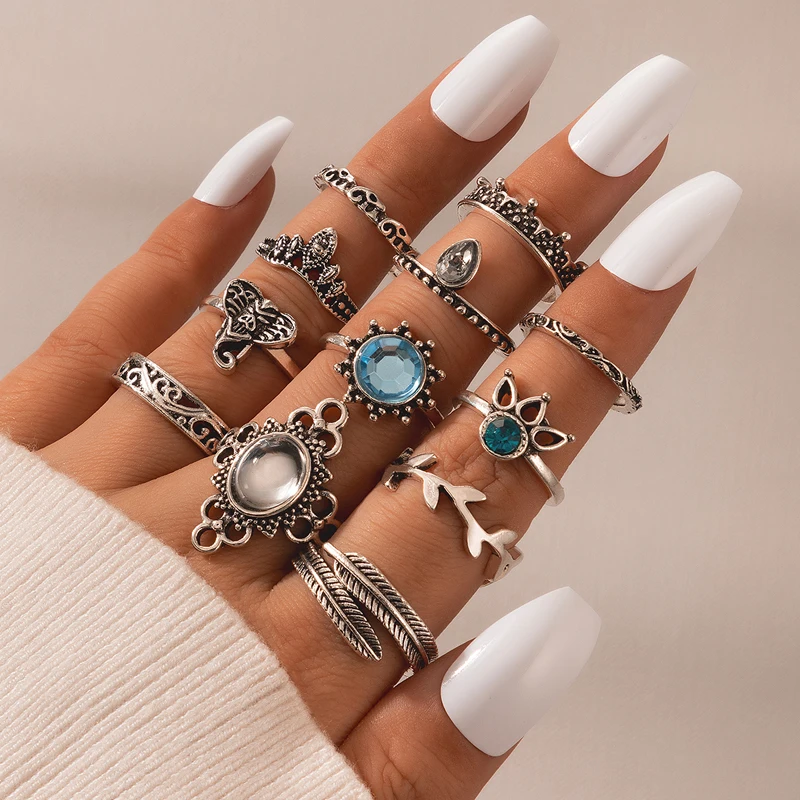 Tocona 12 шт.компл., богемный винтажный Античный Серебряный слон, корона в форме листа, пальцевый набор колец на сустав пальца для женщин, ювелирные изделия 6581