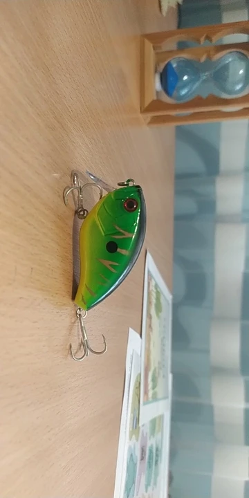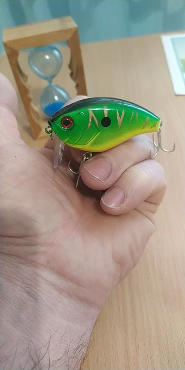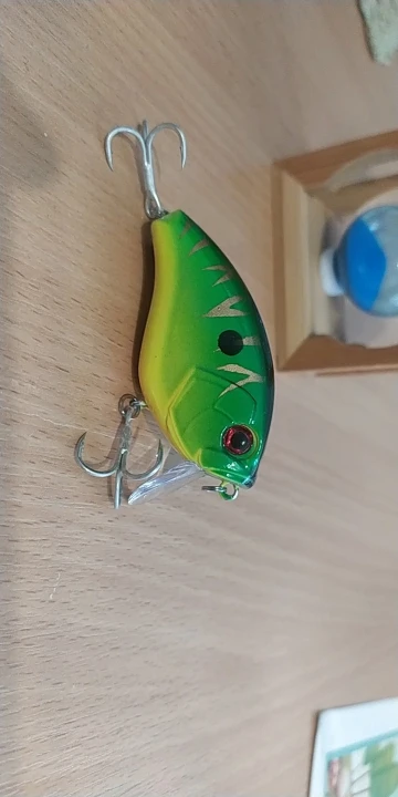 Очень неплохой воблер. Внутри шар .При проводке агресивно издает стучание под водой, чем виманивает хищника и заставляет атаковать.Цвет довольно таки яркий и реалистичній с точкой по бокам.Крючки слабоватие , можна заменить. Воблер робочий.