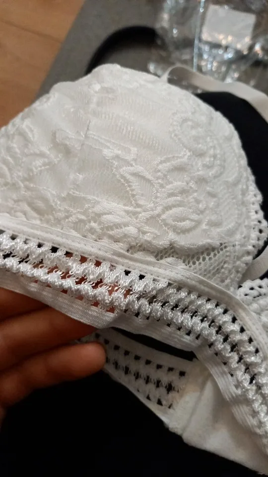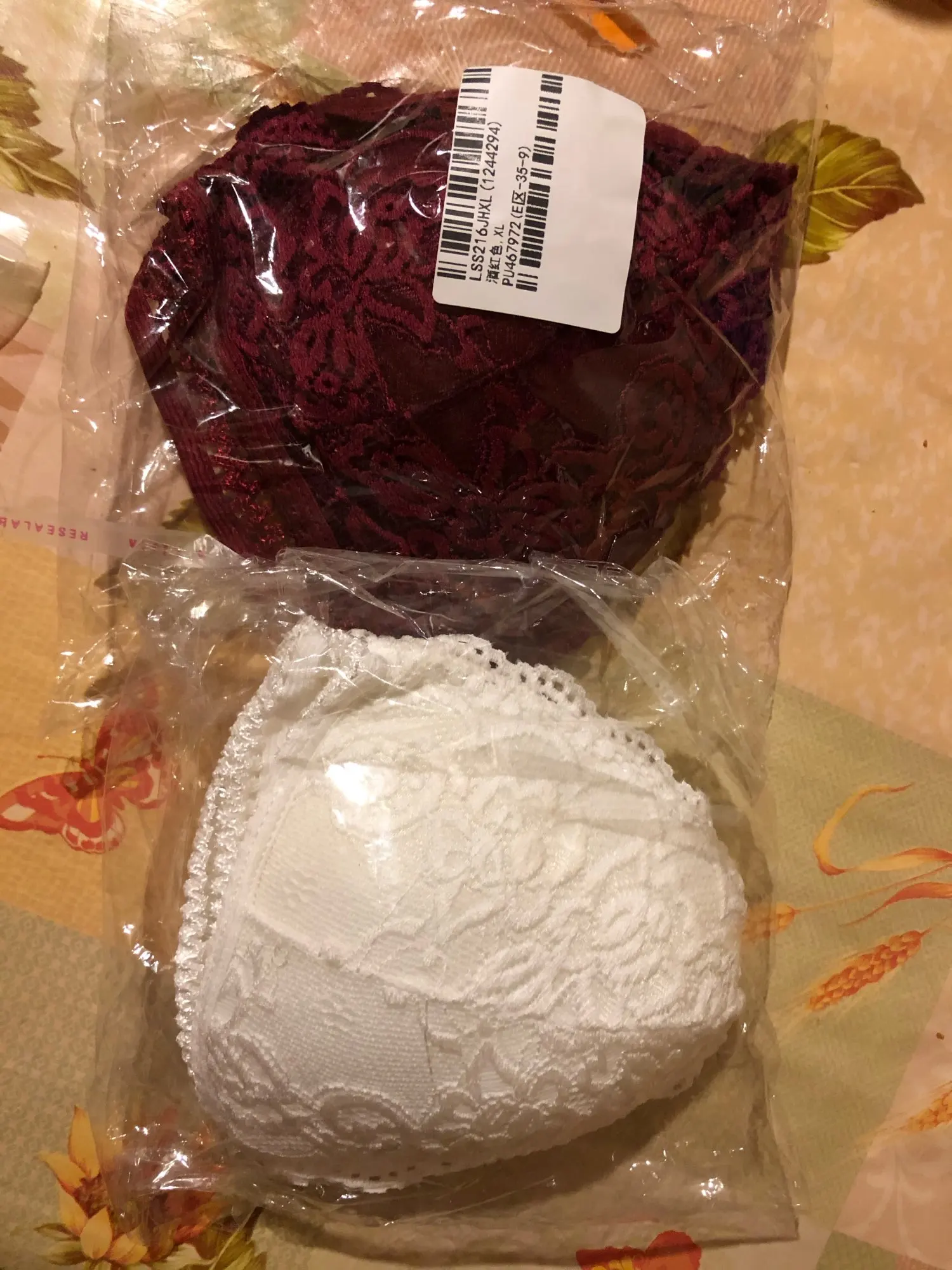 Товар доставили быстро за 15 дней. Описанию соответствует качество хорошее, но чёрный бюстгальтер в чашке чуть меньше белого, а так к телу приятный. На ОГ 100 под грудью 85 см белый подошёл хорошо, а вот в чёрном чашечки и бретельки немного маловат , наверное на размер L. У кого грудь небольшая будет хорошо на теле почти не чувствуется. Надо брать на 1-2 размера больше своего. Товар и продавца рекомендую. 5* В чашках есть вставыши из поролона их можно вытащить, косточек не каких нет соединёно резинкой по обхват.Вообщем на худиньких будет смотреться хорошо