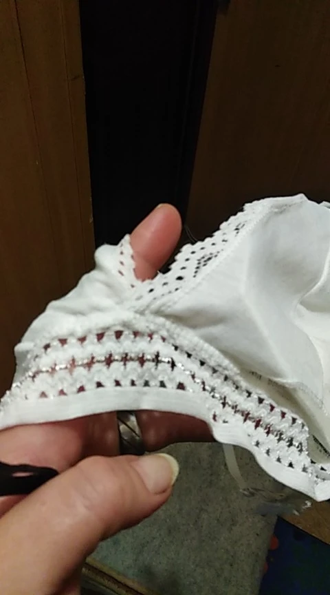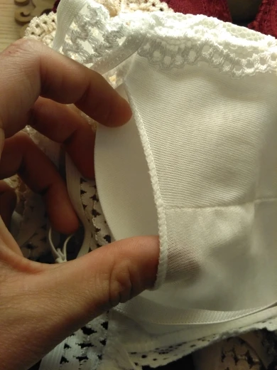 Немного торчат необработанные края, придётся подшивать. Кривовато сшито кружево на внешней стороне, но можно попробовать разгладить