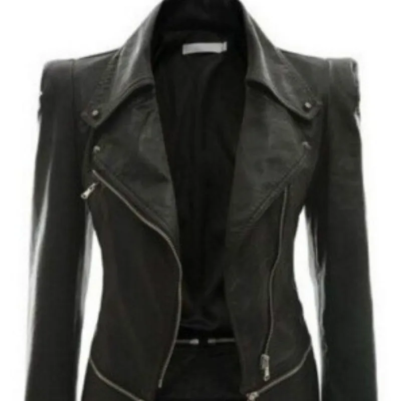 Куртка женская из искусственной кожи, готическая Черная мотокуртка на молнии, с длинным рукавом, жакет в готическом стиле из искусственной кожи, осень 2018