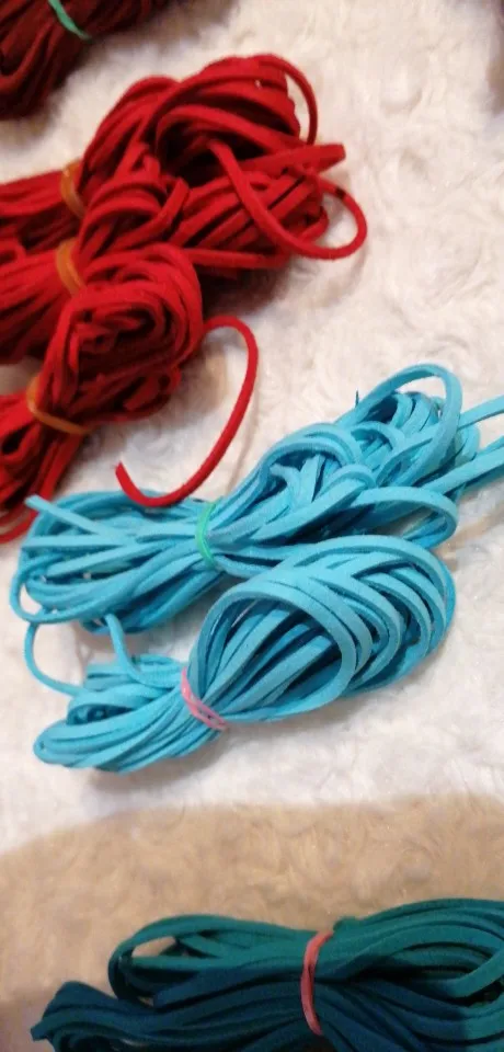 веревочка хорошая, цвет совпадает. единственный минус - продавец перевязал резинкой. от нее остались следы и они не разглаживаются:( частично за час распрямились, но частичнотак и остались следы от резинки.. первый раз присылают перевязанные резинкой, обидно.