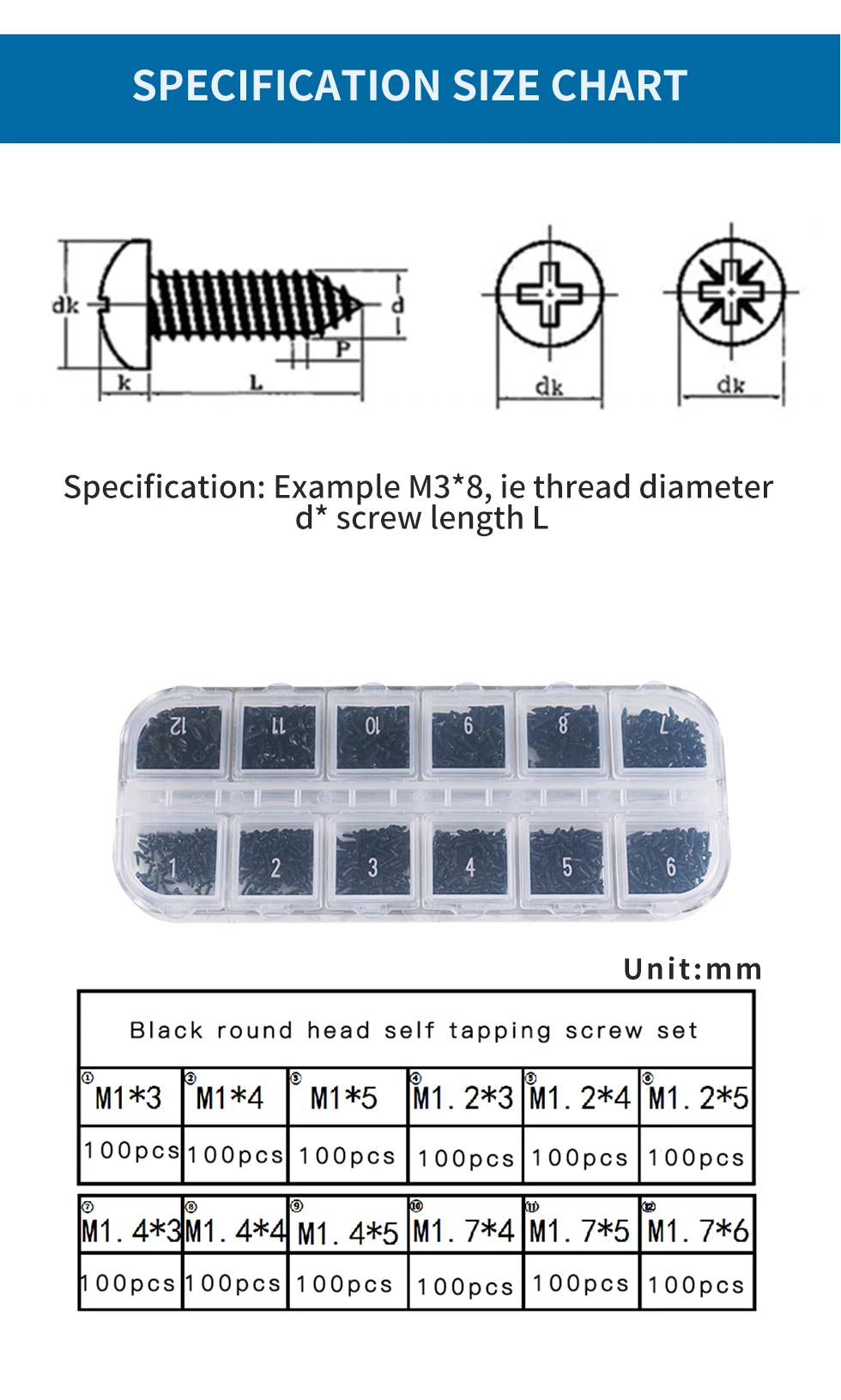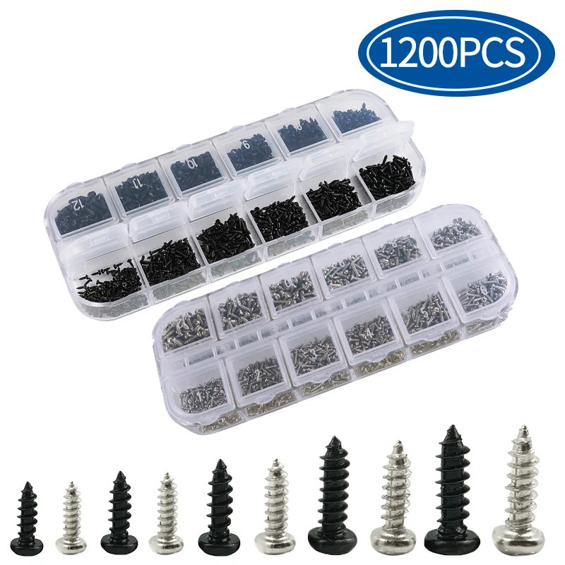 Микро винты для очков круглой головкой самонарезающие электронный маленький шурупов для ногтей комплект ПК болтов и гаек 1200 шт.компл. M1 M1.2 M1.4 M1.7 home improvement
