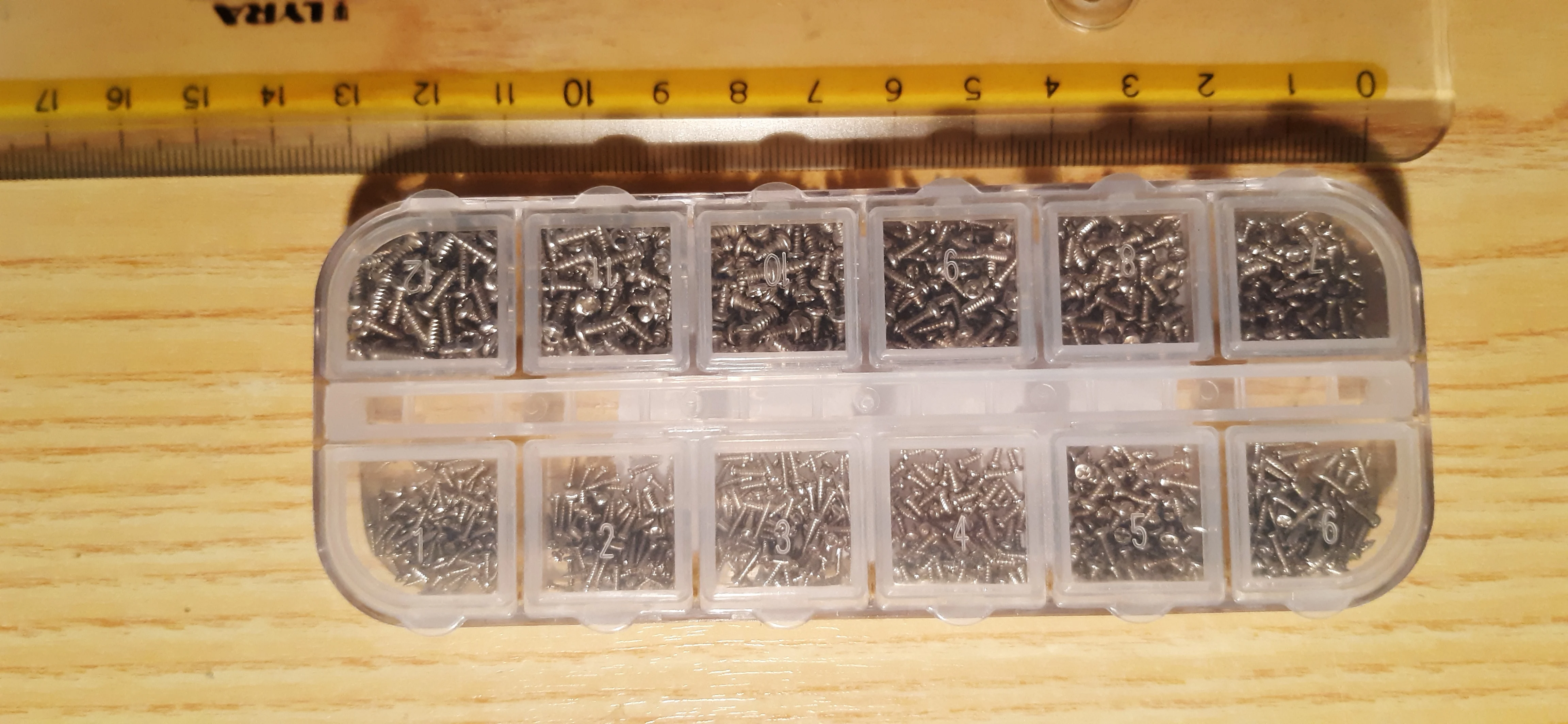 Куда-то дел винтики от ноутбука. Теперь будет чем собрать его. И в запас взял несколько размеров.