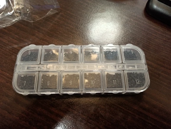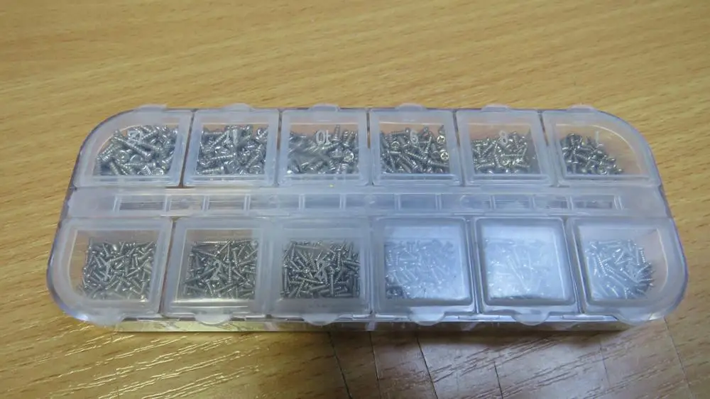 Отлично. Отлично. Идеальная маленькая коробка, где отверстие для каждого отсека. Невозможно смешать микровинты. Я надеюсь, что у меня будет винт, который я ищу для ремонта моей камеры.