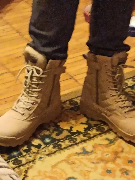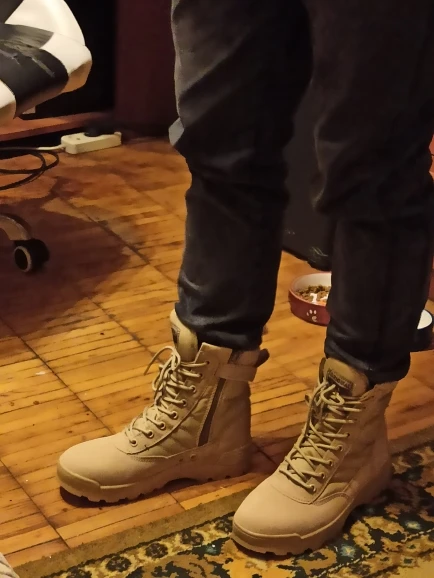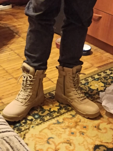 Ботинки очень хорошего качества, великолепные. Очень удобные и прочные, хорошо склеены и приготовлены. Лучший материал, нескользящая и прочная подошва, я рекомендую эти ботинки и поставщика. Я запросил размер 42 и выгляжу отлично, настоящие размеры, цвет и описание такие же, как описано. Я куплю другие.