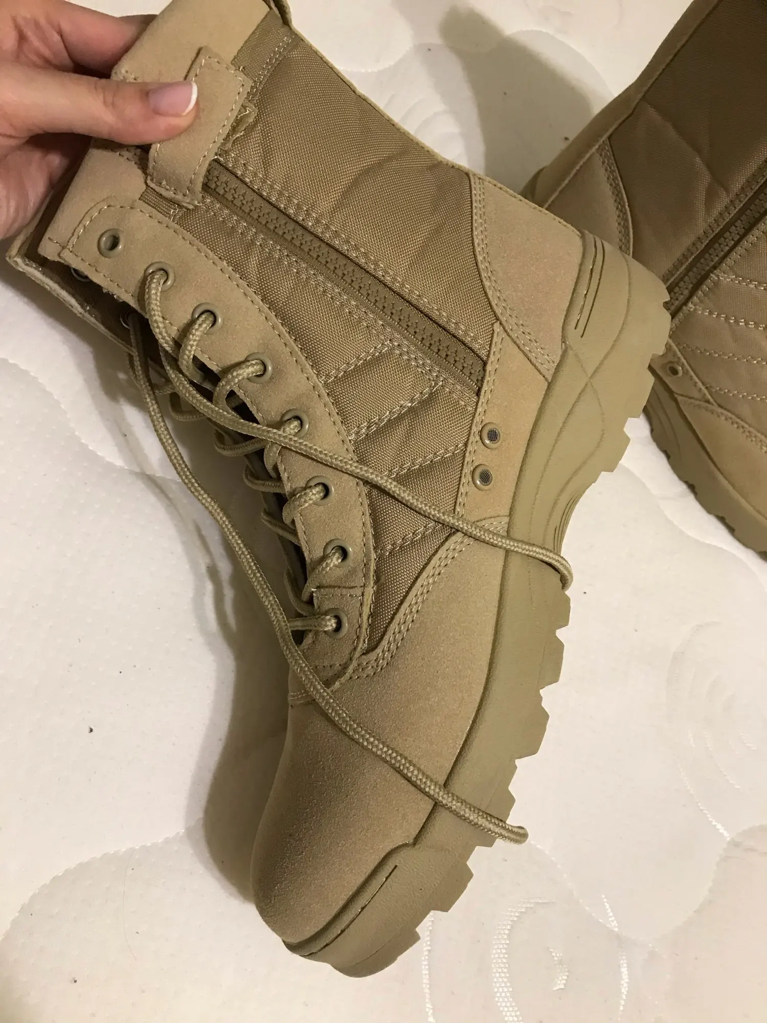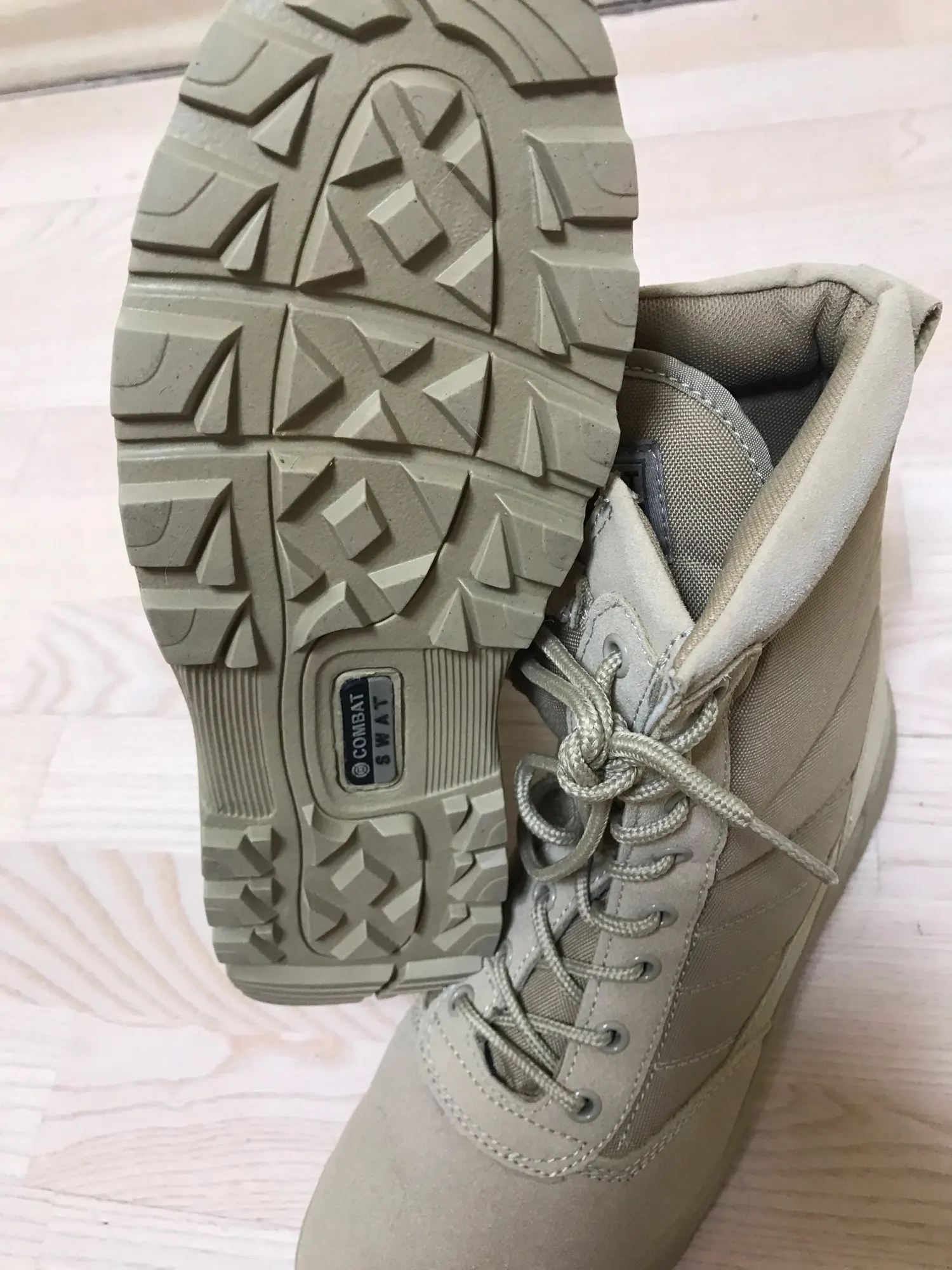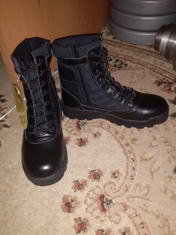 Доставка в РБ 2.5 месяца. Пришли в обычном пакете, целые, есть слабый неприятный запах клея. Изготовлены очень хорошо, молния простая, вшита хорошо. Наружное покрытие похоже на экокожу, гладкое и сделано ровно. На подошве видны следы клея, но за эти деньги это нормально. Подошва с хорошим протектором, не скользит. Сами берцы лёгкие, голень хорошо фиксируется. Как покажут себя при длительной носке пока не понятно. Но за качество однозначно 5 звёзд. Брал 43 размер на свой 42-42.5 подошло отлично. Продавца и товар рекомендую.
