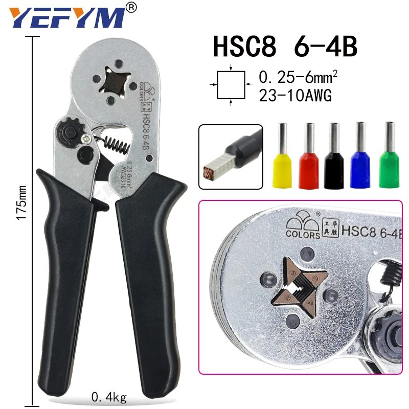 Цвета HSC8 6-66-4B обжимные плоскогубцы 0,25-6 мм2 23-10AWG для трубчатых терминалов бренд мини Тип круглый нос европейские плоскогубцы инструменты