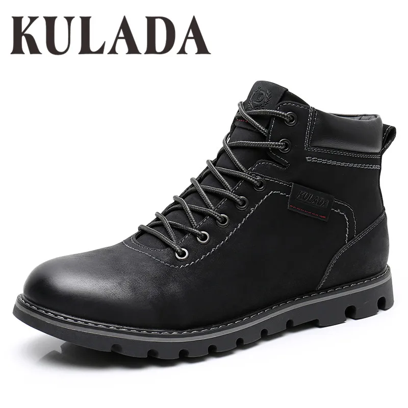 KULADA ботинки; мужские очень теплые зимние ботильоны высокого качества; нескользящие ботинки для отдыха; мужские кроссовки на шнуровке в стиле ретро; повседневная обувь