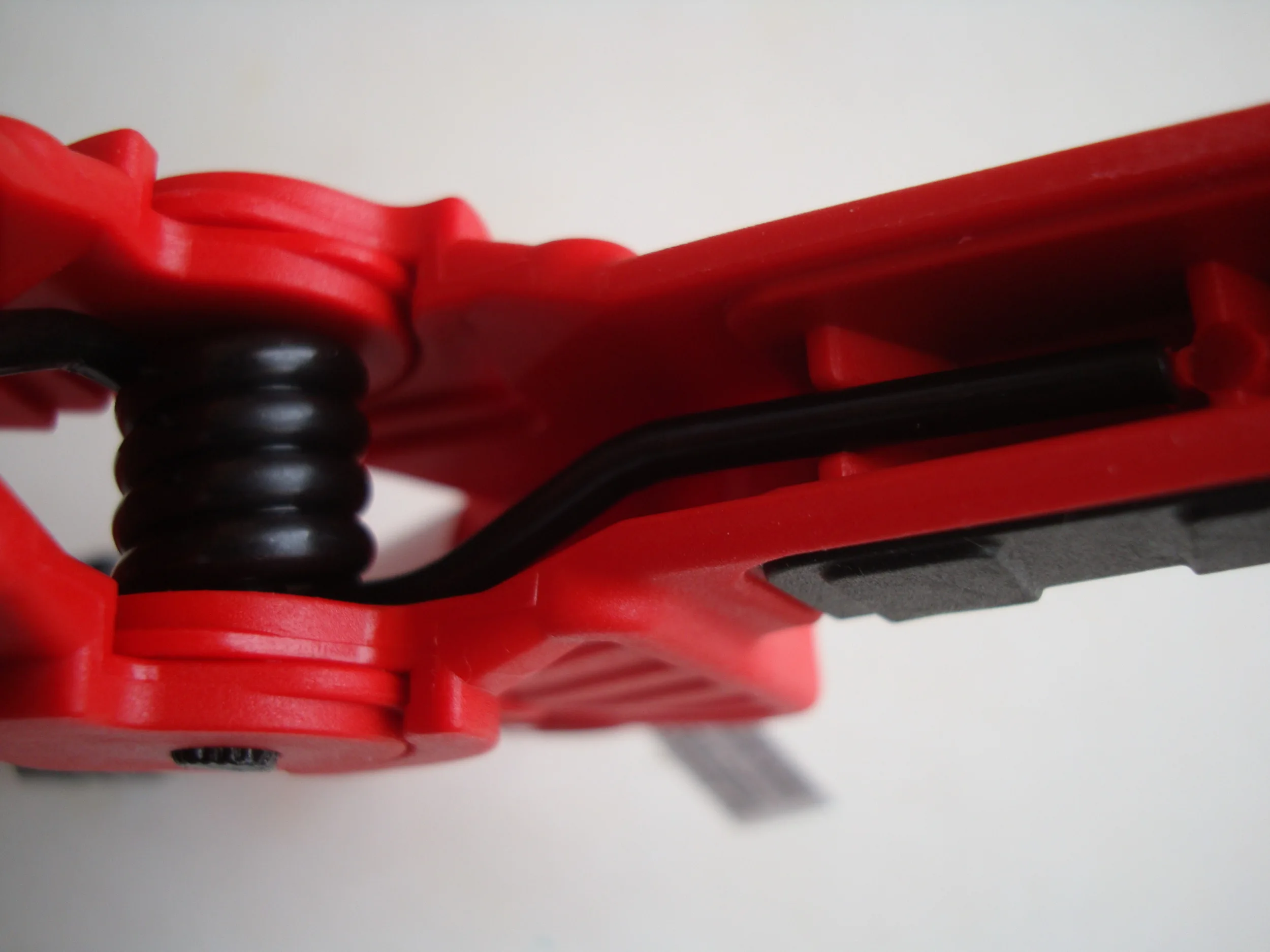 Взял 6 дюймов: почти все как в описании, есть некоторые не критические внешние отличия (штифт вместо винта, надпись красная, а не белая). Пластик толстый, прочный, не вонючий. Пружина очень тугая - одной рукой я не смог разжать до самого конца, только примерно на 2/3 потом приходится подключать вторую руку. Выглядит надежно. Доставка месяц, курьер привез до дома. Упаковано в пупырку, все пришло целым.