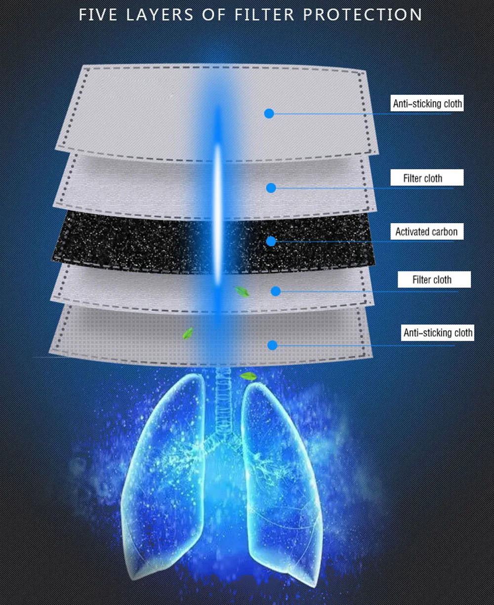 5 слоев маски с активированным углем фильтр PM2.5 анти-противотуман...