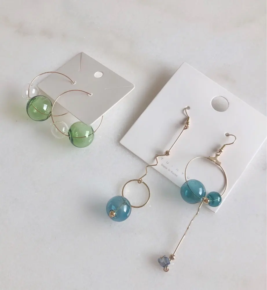 Женские асимметричные серьги в винтажном стиле с темно-зеленым стеклянным шаром, длинные висячие серьги в Корейском стиле, 2019
