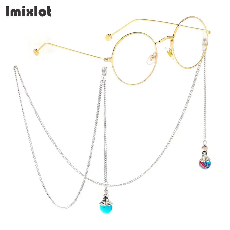 Цепочка для очков для чтения с подставкой, металлическая шнуровка для солнцезащитных очков, ремешки на шею, шнурок для очков с бусинами, фиксатор для очков, 1 шт.