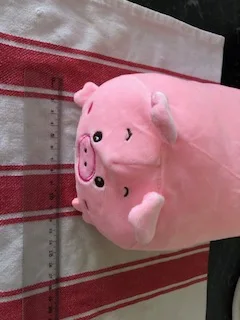 Классная хрюшка! Всё точно как в описании, мягкая. Только ее смяли сильно для пересылки - вполовину. Понятно, что она большая, но можно было бы немного более бережно упаковать.