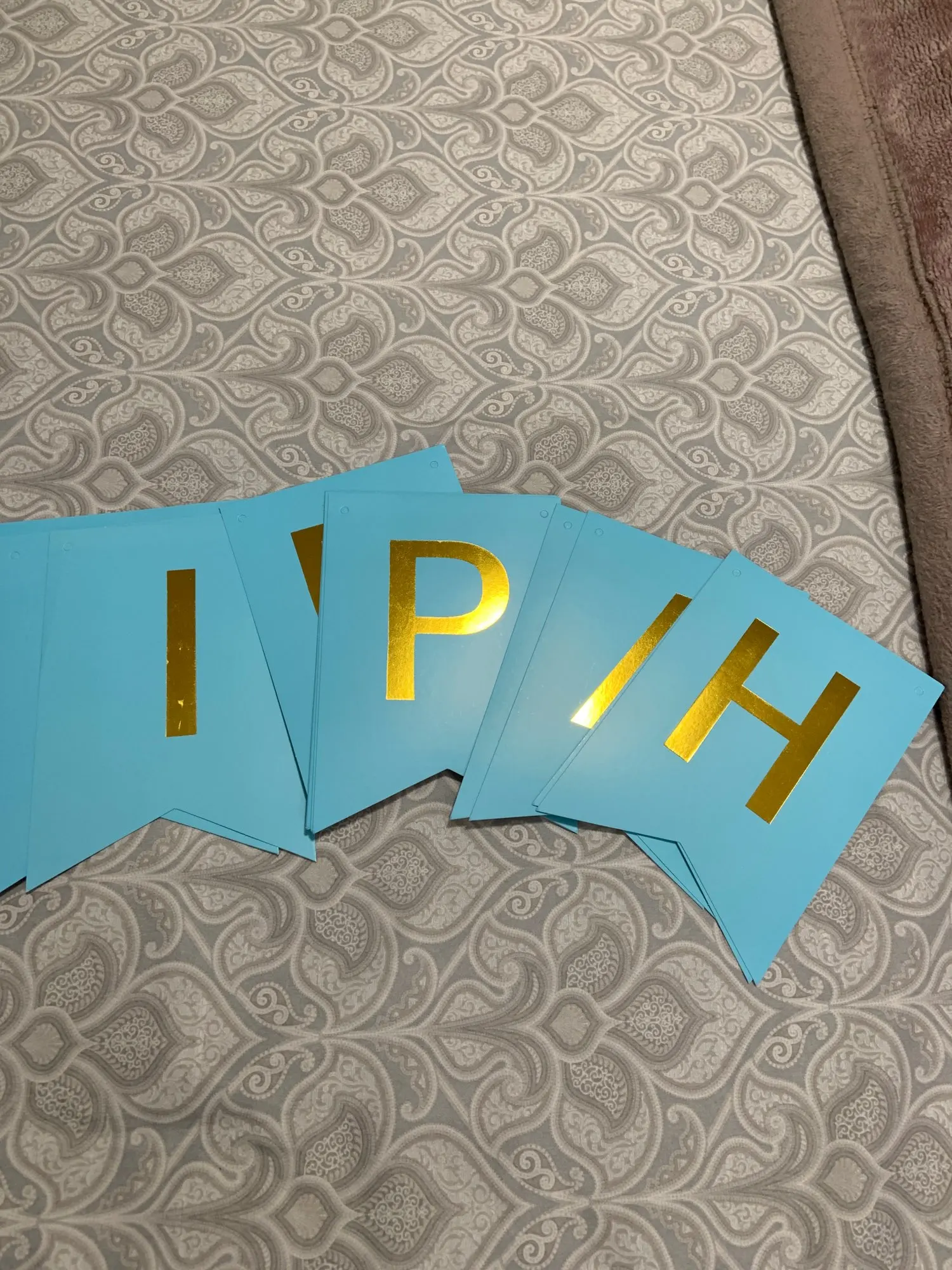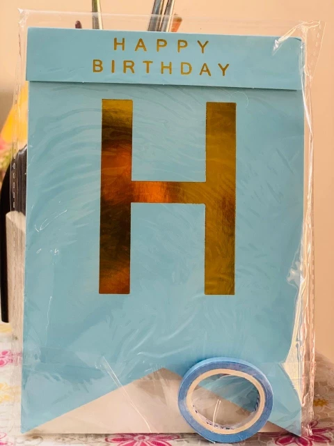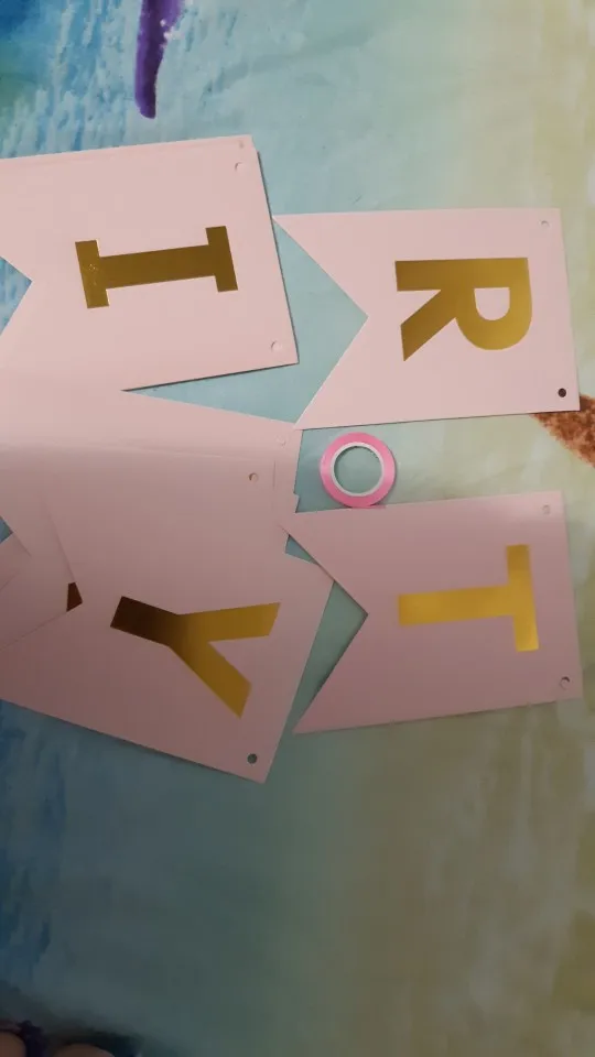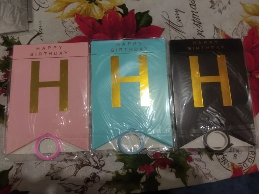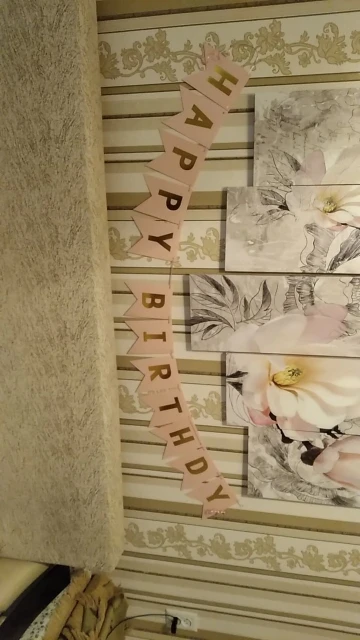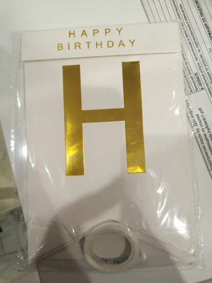 На картинке продавца буквы симметрично раскрашены, и я ожидала именно такого окраса... но к моему сожалению, мои ожидания не оправдались... (фото добавила для наглядности). За это снимаю одну звезду... А в целом: флажки хорошие- из плотного картона, буквы золотистые, четкие. Продавец положил веревочку для развешивания, но я использовала белую хлопковую нить 1 мм (ее не видно). Дошло за 2 недели в Саратов.