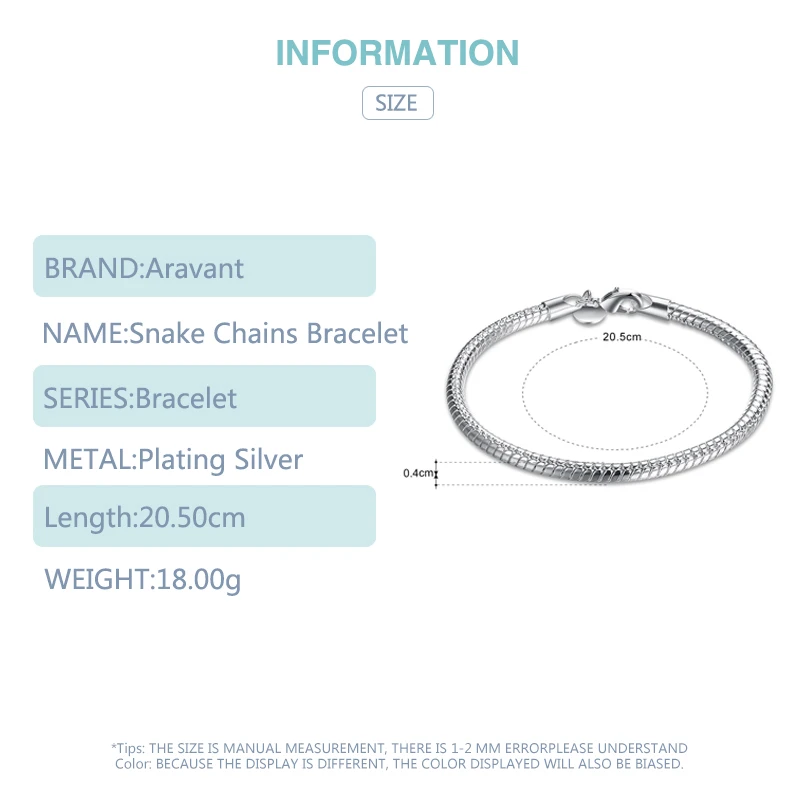 925 серебро 4 мм змея цепи браслеты браслет для женщин Мода Свадебные украшения