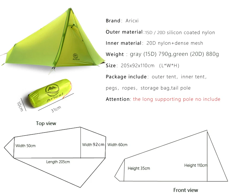 Палатка для кемпинга ARICXI, на 1 человек, Ультралегкая, на 3 сезона, профессиональная, 20D, Silnylon