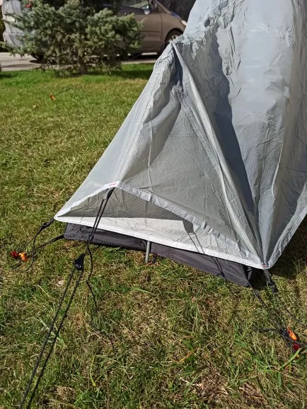 Хорошее качество, герметичные швабры. Но легко сдавливается с летучей короткой застежкой. Легко зафиксировать. Также небольшой зазор расстояния на стороне между летучей и внутренней палаткой, может быть тронут под дождем. Не для высоких людей, некоторые <180 см по-прежнему разумны. Тренируйтесь несколько раз! 790 г светло-серый. Рекомендовано.