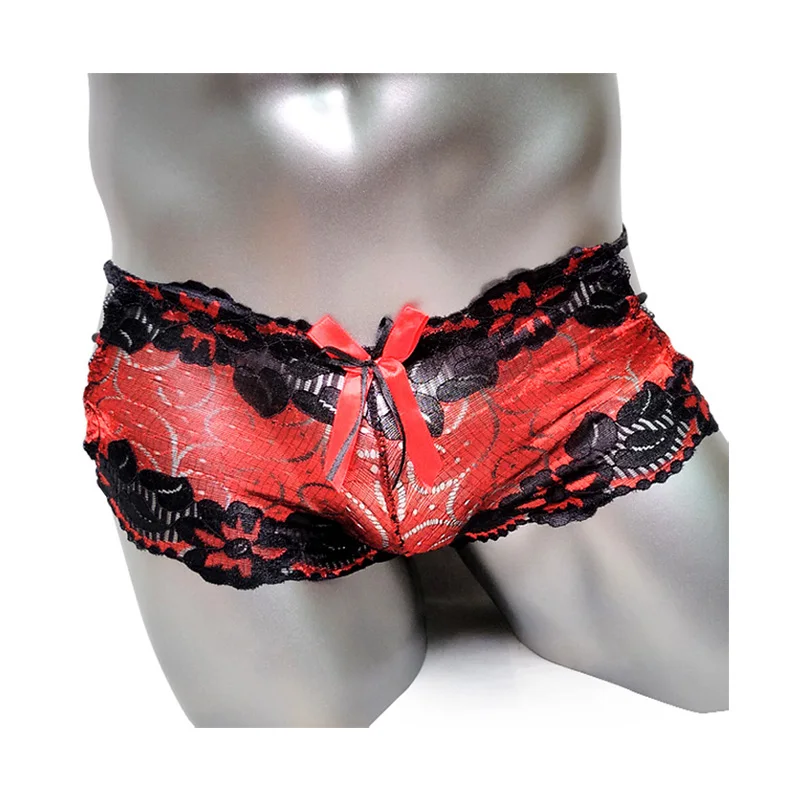 Трусы-боксеры мужские короткие, кружевные, с заниженной талией