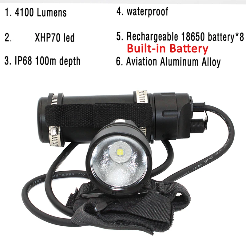 Подводный светодиодный фонарик XHP70 для дайвинга, водонепроницаемая Встроенная батарея, Раздельный наручный светодиодный светфонарь льник для подводного плавания