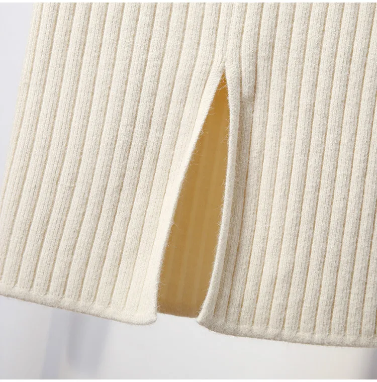 Женские Тонкая Элегантная Юбка Карандаш Миди с разрезом на спинке Осень Зима Повседневная Вязаная Юбка с Высокой Талией Юбки Женские Юбки Женская Одежда