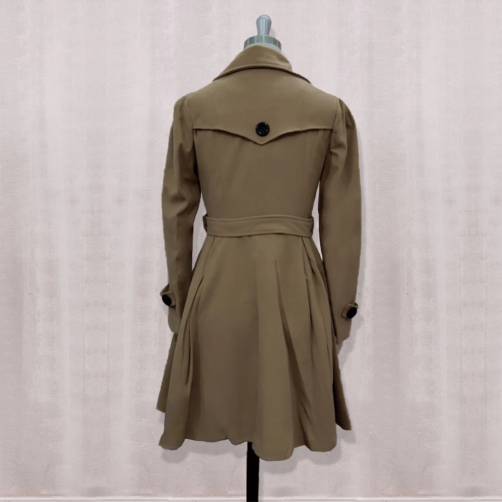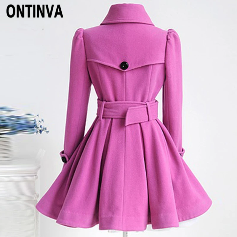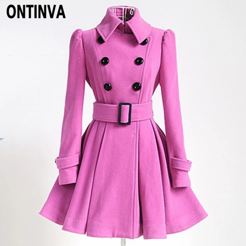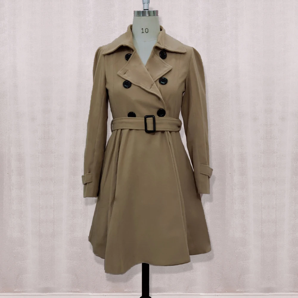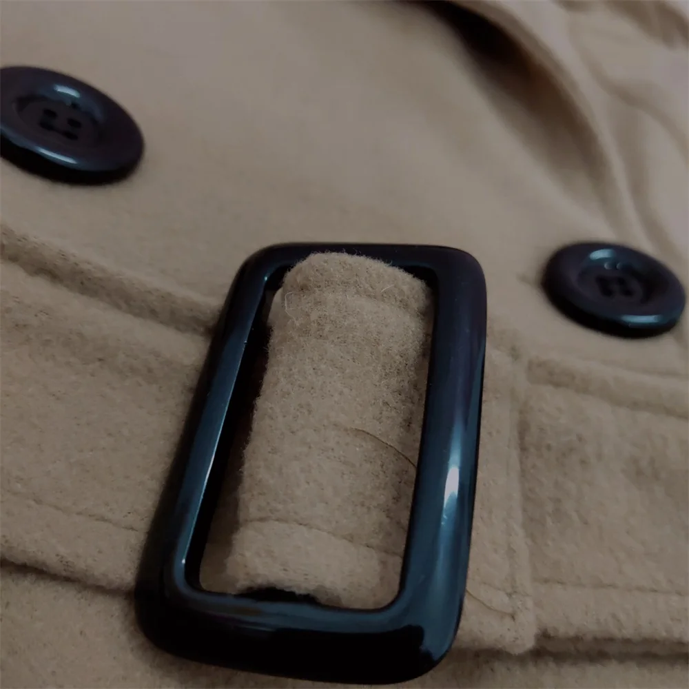 Женское шерстяное пальто, приталенное двубортное пальто черного цвета, с поясом, на зиму
