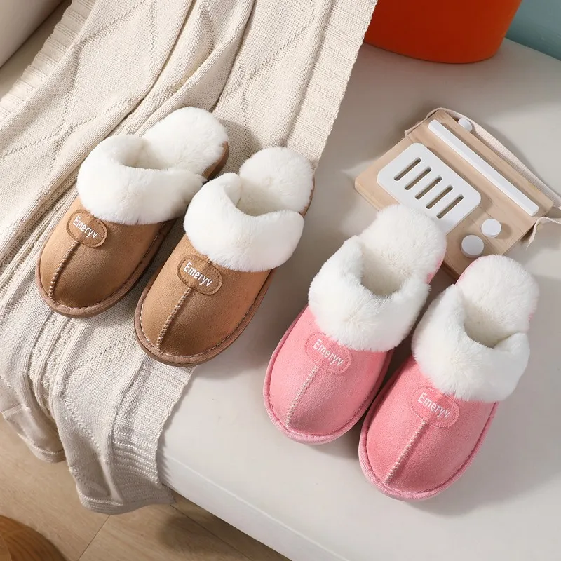 Женские меховые тапочки, Зимняя Теплая обувь, замшевые, плюшевые, для дома, для улицы, для мужчин, для женщин, для пар, из хлопка, с пенным наполнителем с эффектом памяти