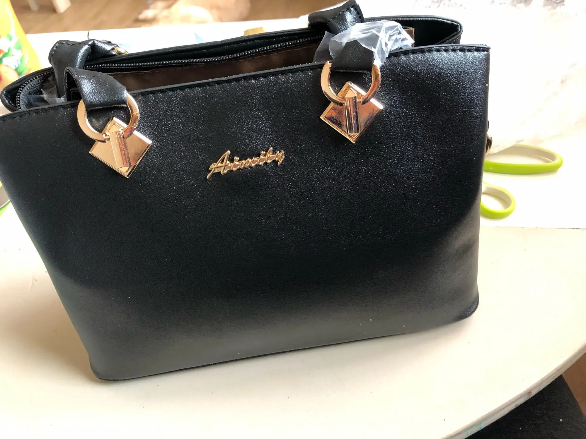 Сумка соответствует фото,сшита хорошо,вместительная. Была упакована пакетами с воздухом.К сожалению один из них лопнул,и это не спасло сумку от значительных заломов...