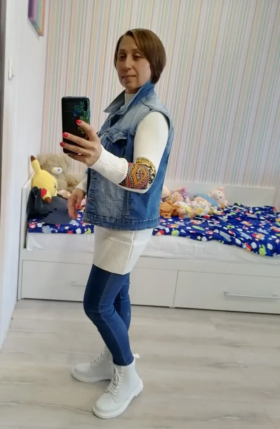 Маломерит дико. ХХХL на 44 размер на рукавах заплатка из хб. Пришита белыми нитками не аккуратно. Выглядит дешево