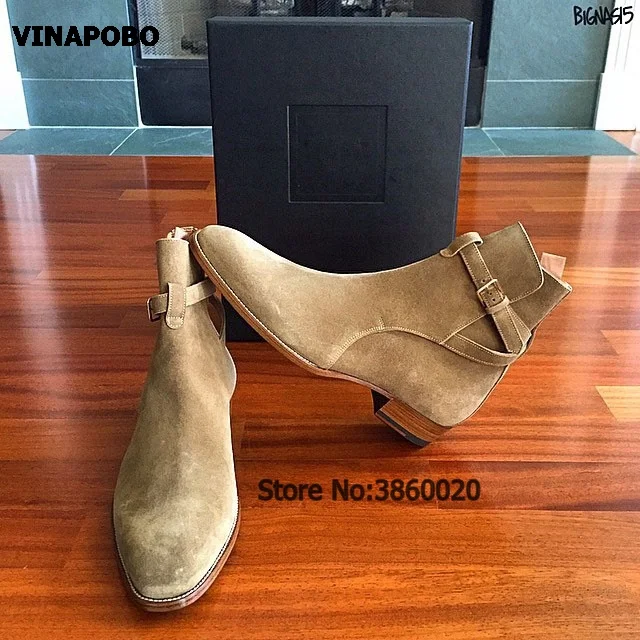 Мужские ботинки челси; Ковбойские кожаные ботильоны с пряжкой; Модные трендовые вечерние туфли на низком каблуке; Замшевые кожаные мужские ботинки