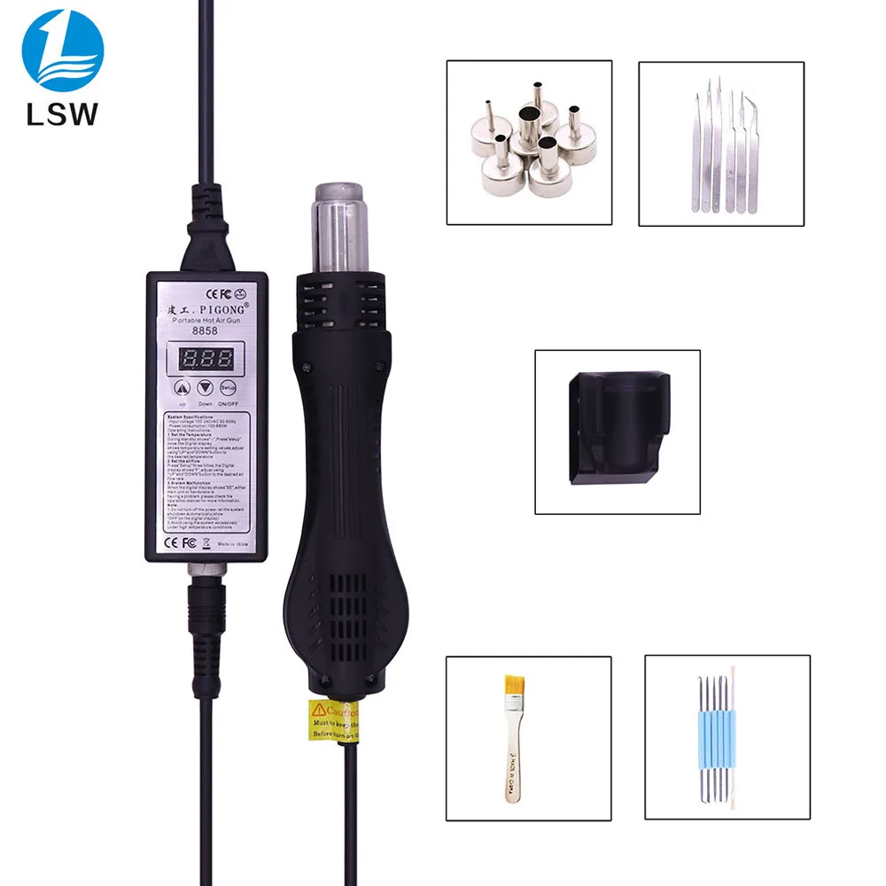 Портативная паяльная станция BGA, 220 В, воздуходувка горячего воздуха, тепловая пушка, лучшее качество 8858, ручной пистолет горячего воздуха, 6 шт.